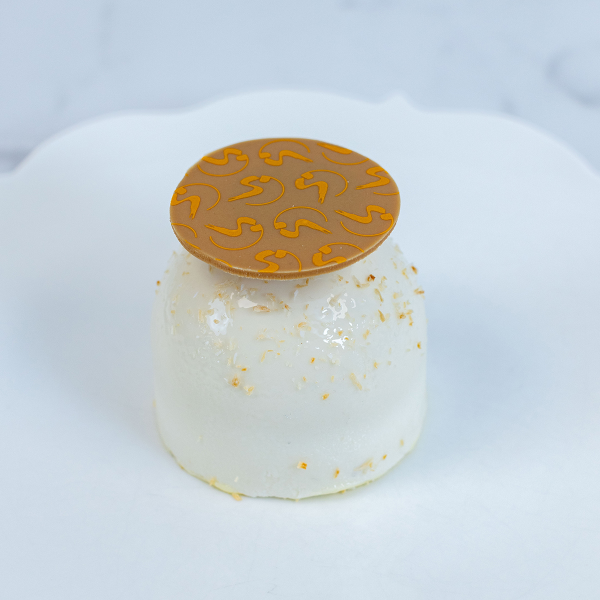 Biscuit croustillant noisettes, confit d’abricot & mousse noix de coco.