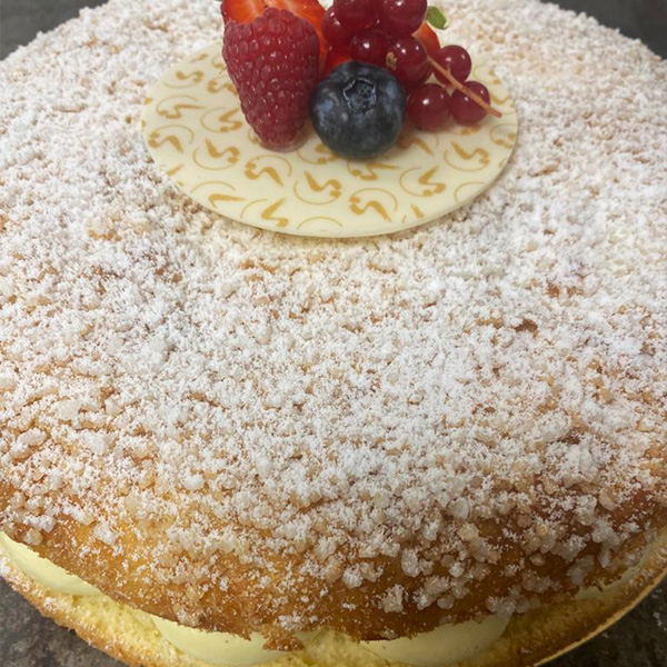 Brioche, crème chiboust & chantilly à la vanille, fruits rouges.